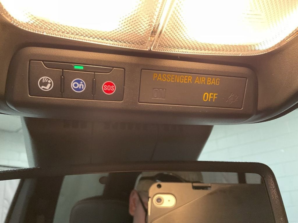 - Includes Passenger Sensing System which automatically switches the front passenger seat frontal airbag on or off and illuminates a status light that indicates whether the airbag is on or off1